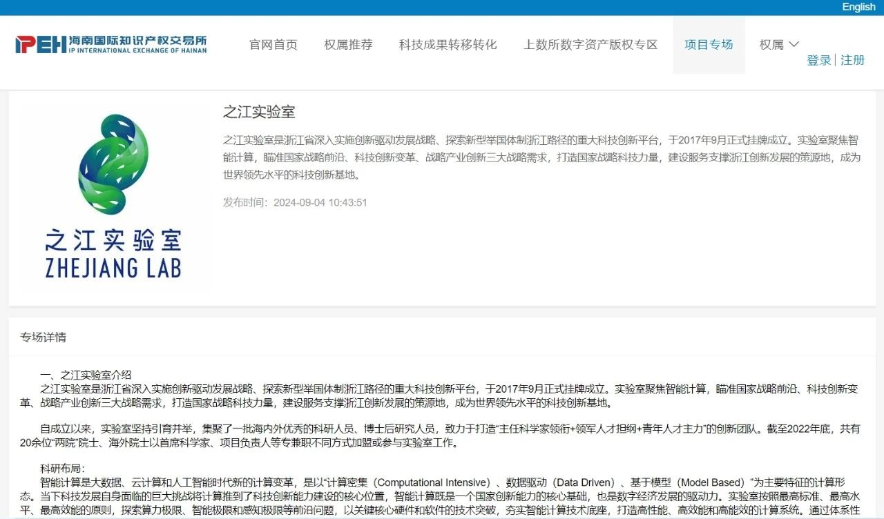 点击链接可浏览挂牌知识产权:之江实验室专场